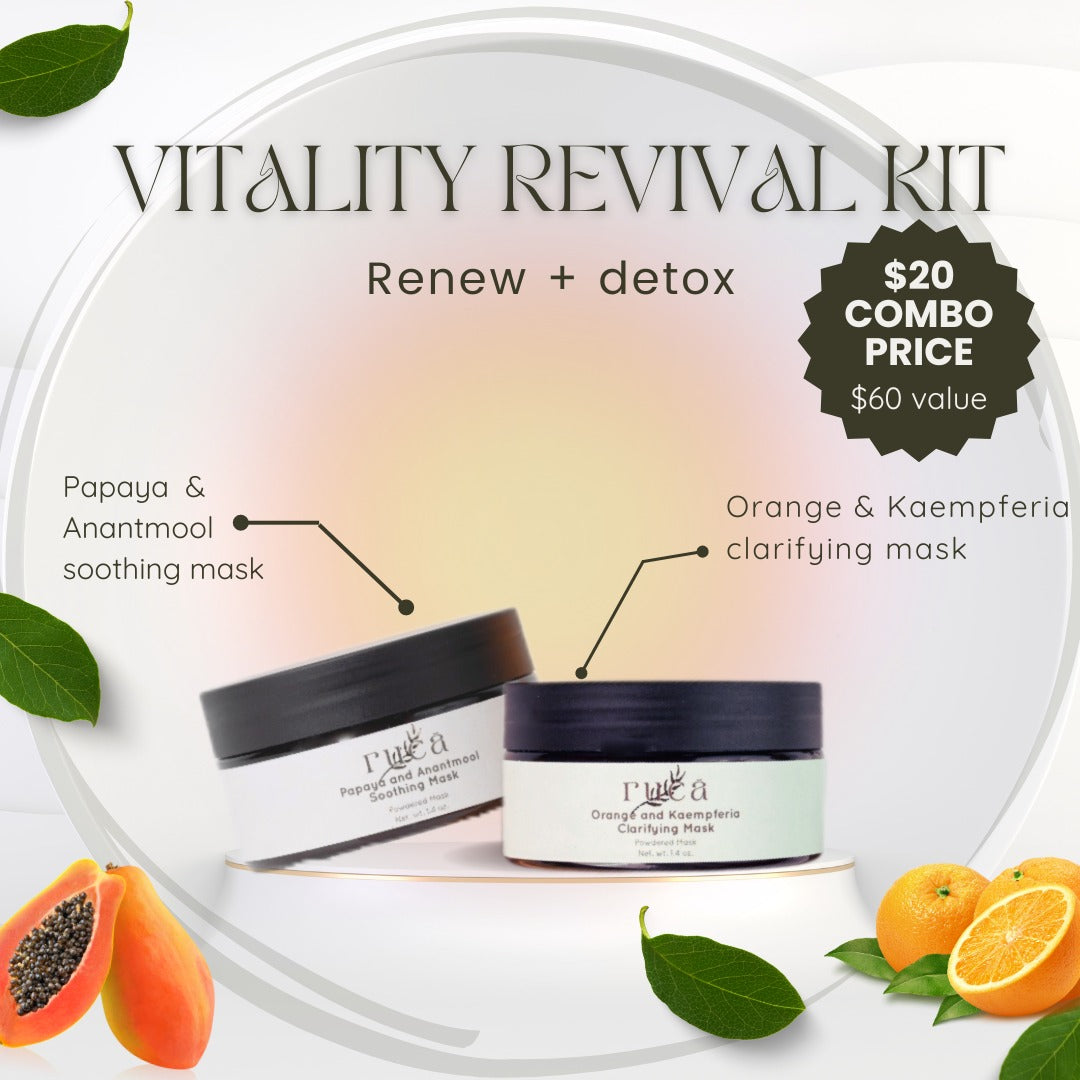Elevate your skincare routine with our Vitality Revival Kit, a thoughtfully curated duo of face masks designed to complement and enhance each other’s benefits for a truly transformative experience.
