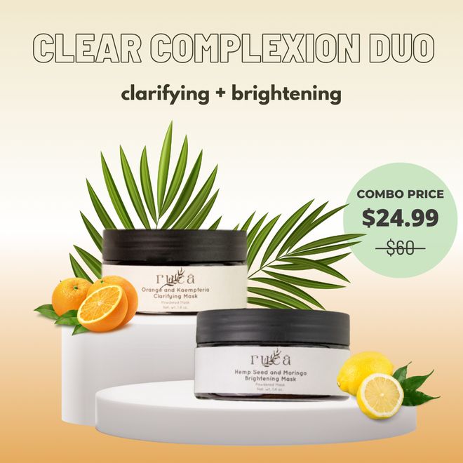 Introducing the Clear Complexion Duo, a premium bundle designed to purify, brighten, and rejuvenate your skin through the synergistic effects of two powerful face masks. Each mask is crafted with potent botanicals and traditional wisdom to target specific skin concerns, ensuring a comprehensive approach to skin health.