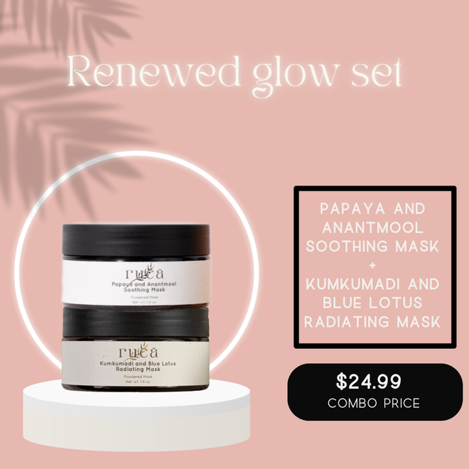 Introducing the Renewed Glow Set, a luxurious bundle designed to elevate your skincare routine with the transformative power of nature's most cherished ingredients. This set includes two meticulously crafted face masks, each promising to rejuvenate and illuminate your complexion.