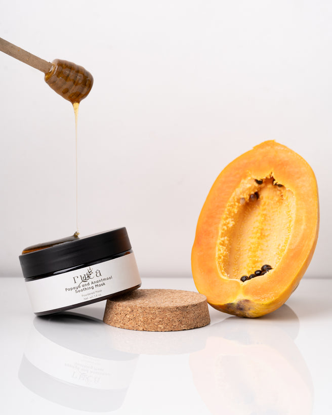 Immerse yourself in the luxurious care of our Papaya and Anantmool Soothing Mask, a carefully curated blend of organic, all-natural ingredients designed to protect and nourish your skin. Enriched with the potent essence of papaya extract and the soothing properties of anantmool, this face mask offers a multitude of benefits for your skin.